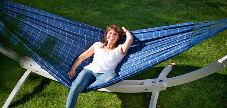 Priporočamo vam, da v viseči mreži ležite diagonalno, saj tako zagotovite optimalno podporo hrbta in razbremenitev hrbtenice.